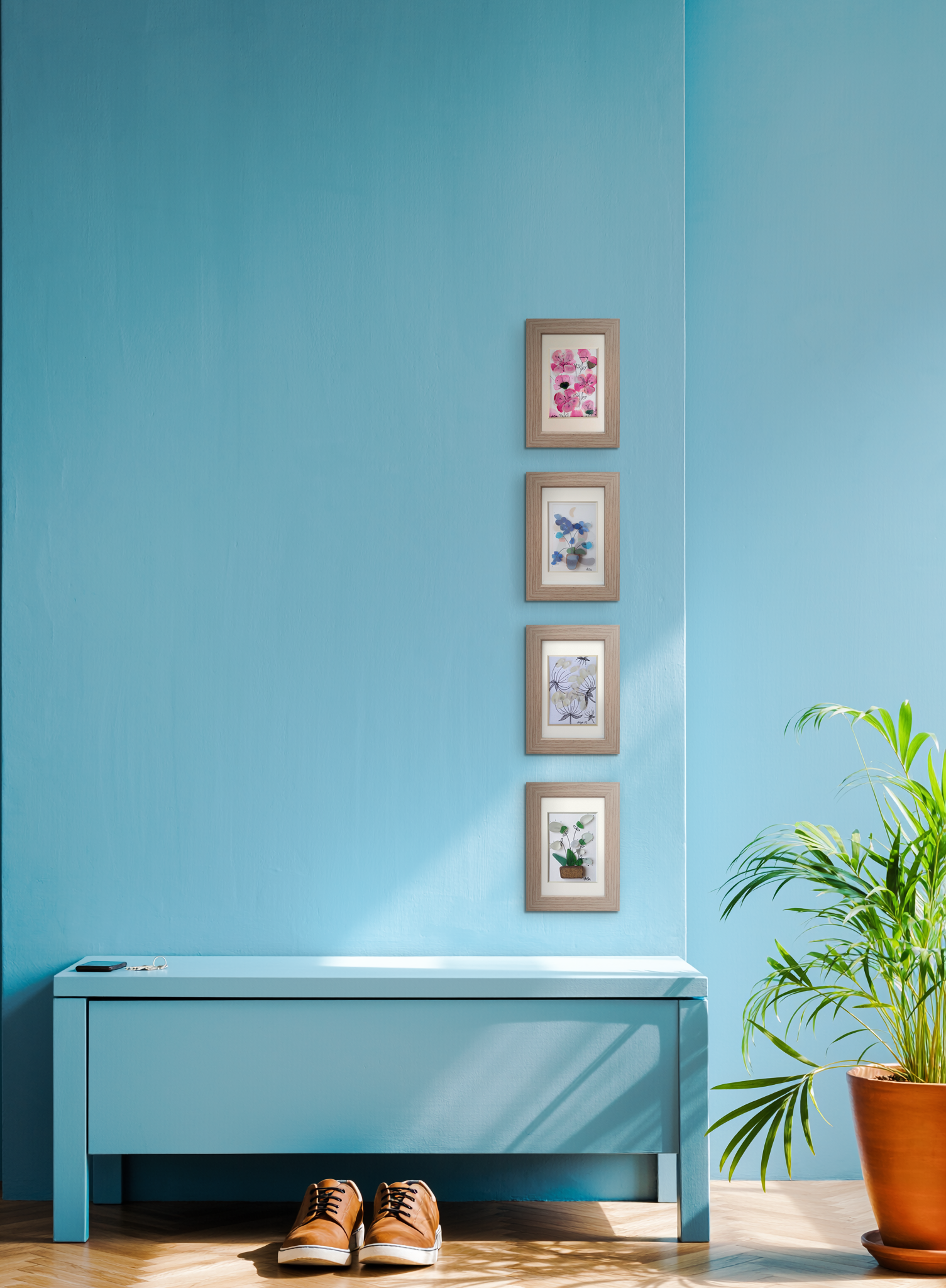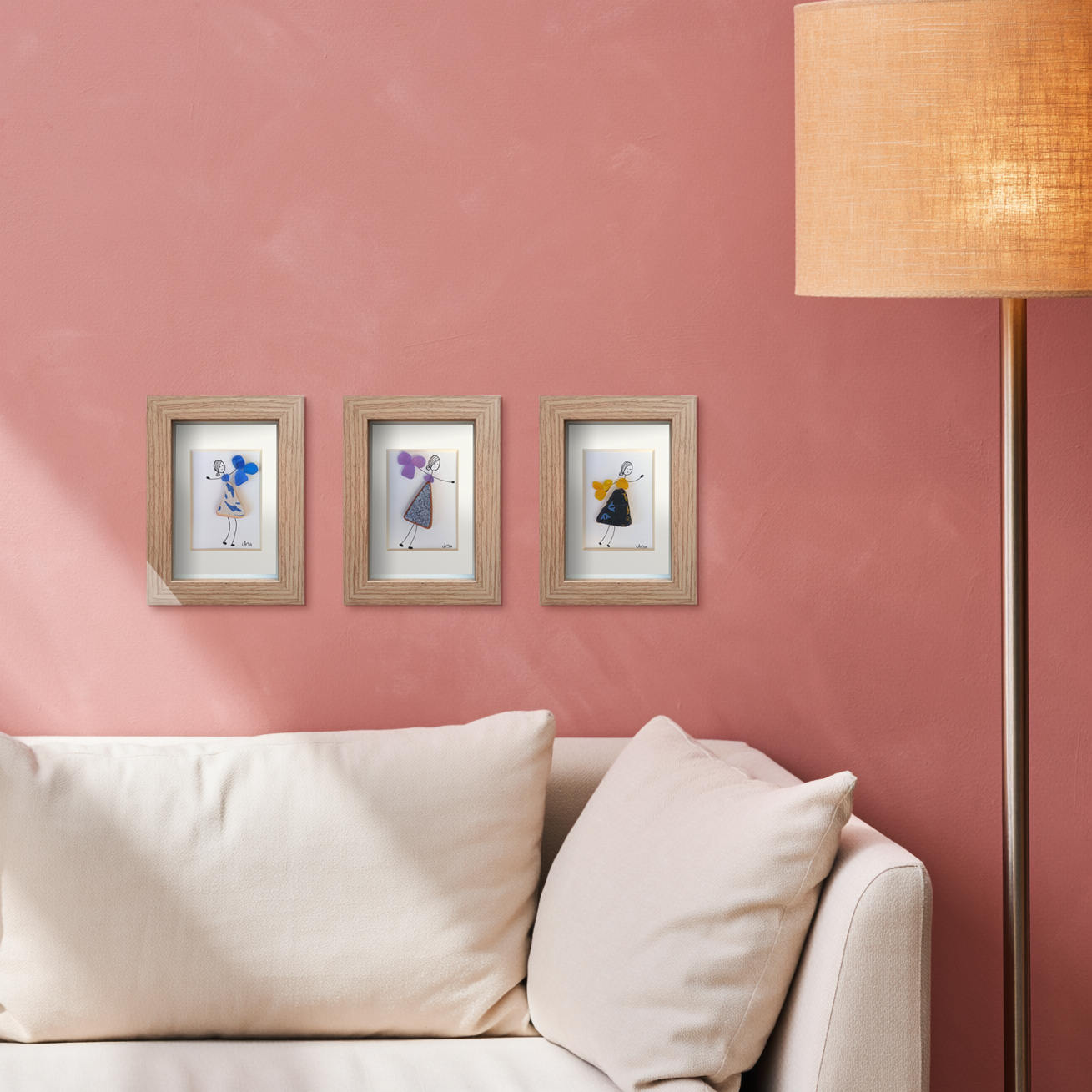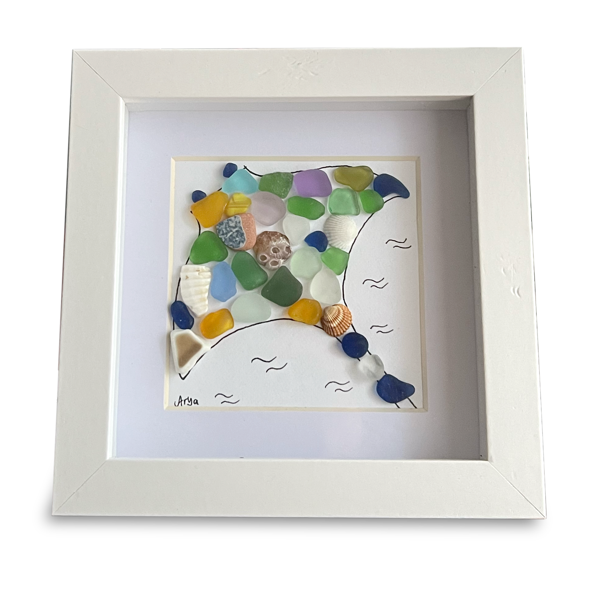 Mis cuadros están diseñados para aportar personalidad, frescura y calidez a cualquier espacio. No encontrarás dos iguales: y en cada vidrio he respetado su color, su tono y su forma pudiendo apreciarse en cada uno de ellos el estado original en el que el mar lo ha devuelto, y la singularidad de cada uno convierte a cada cuadro en una obra única; lo que puede ser perfecta para un regalo especial, un detalle perfecto para tu hogar, o un mensaje personal, ilusión o recuerdo que puedas encontrar en alguno de ellos.