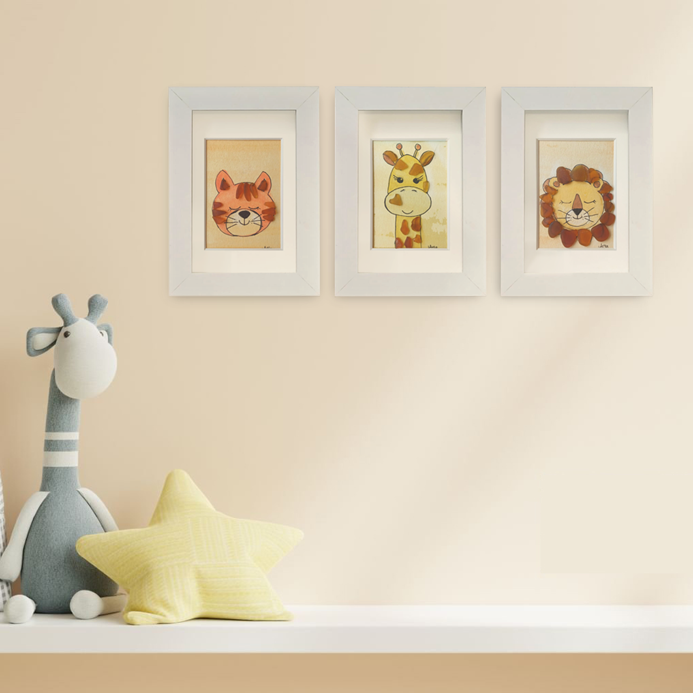 Estos son cuadros en los que los protagonistas son toda clase de animalicos, terrestres, marinos y aéreos. Son una serie de piezas que hablan de ternura, respeto y conexión, y que ponen en valor la belleza de las especies que nos rodean. Cuadros ideales para acompañar habitaciones infantiles, salones cálidos, rincones tranquilos o espacios que busquen un toque natural y poético.